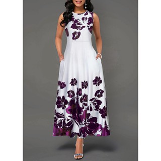 Jual Women Vintage O Neck Floral Print Dress Floral Dress Sleeveless Evening Party Long Dress Lady Offic Shopee Indonesia